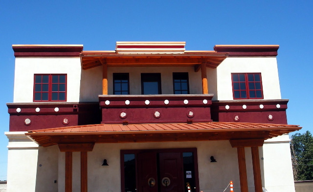 Carlos Delgado, architect, explains that the design of the 6000 sq. ft. structure is a fairly simple passive building—a pioneering, mixed-use structure, utilizing green and sustainable architecture and construction. Passive heating and cooling methods rely on occupants’ modulation of systems; advanced framing techniques save wood and provide more insulation space; energy-efficient lighting, solar hot water with maximum energy-efficient appliances all conserve water and electricity. As an added touch of beauty, regionally adapted plants are featured in a low-water-use landscape and contemplative garden adjacent to nearby wetlands.